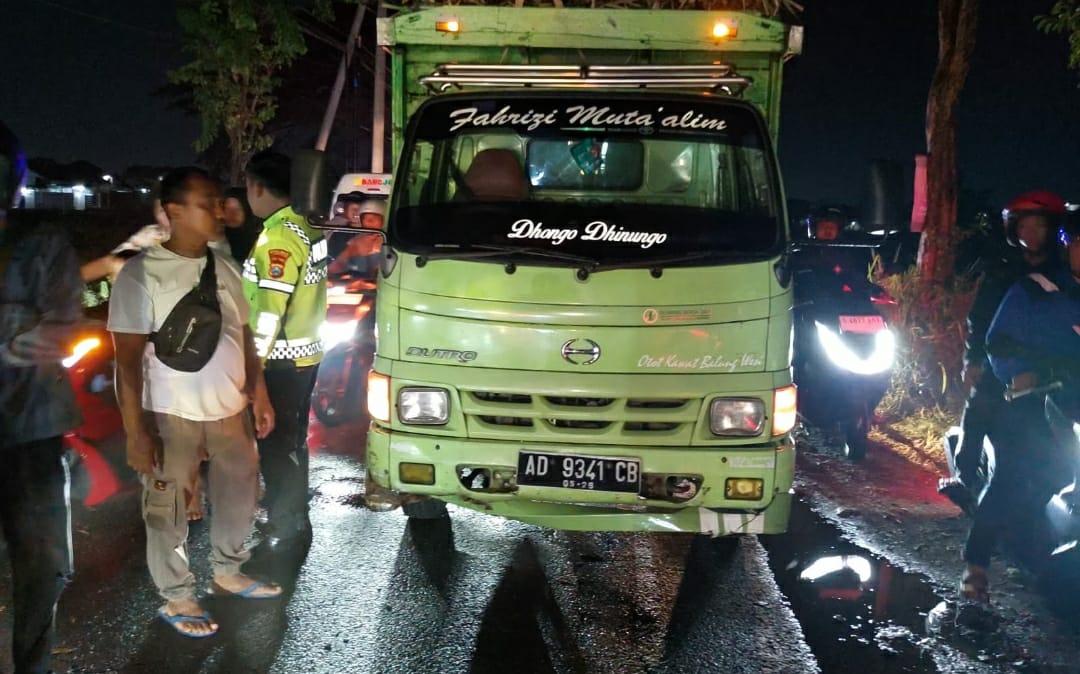 Seorang pengendara motor di Jombang bertabrakan dengan truk, Senin (11/8/25) malam.