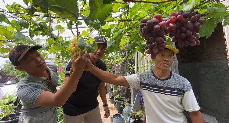Bermaksud memanfaatkan dek lantai dua rumahnya yang menganggur, seorang pria di Jombang sukses membudidayakan buah anggur.