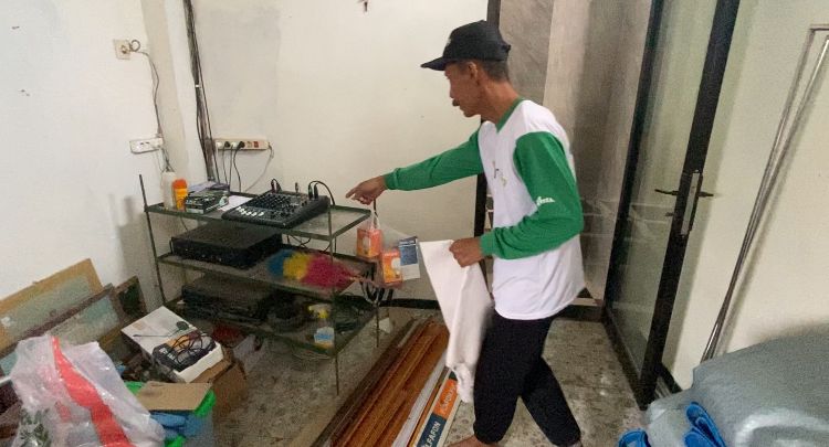 Di Masjid Bachrul Muttaqin, pelaku terekam CCTV saat datang dengan jaket merah dan berjalan kaki. Beberapa menit kemudian, ia meninggalkan masjid sambil membawa tas hitam. Akibatnya, mixer pengeras suara yang biasa digunakan untuk adzan raib, dan baru diketahui hilang saat takmir masjid menyalakan mikrofon.
